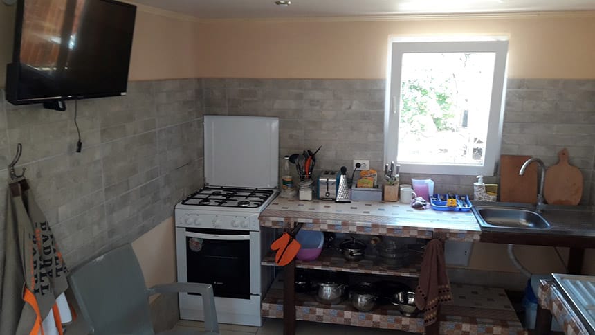 - Формат: гостевой дом с самостоятельным приготовлением пищи на общей кухне